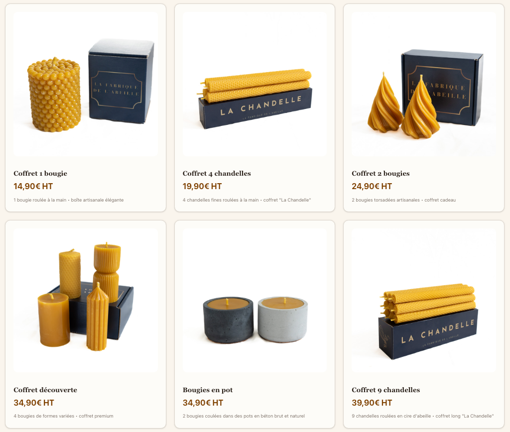 Bénéficiez de tarifs adaptés à l’achat en gros et d’une démarche éco-responsable : nous proposons la récupération des restes de cire et la refonte de vos bougies, afin de limiter les déchets et prolonger leur cycle tout en soutenant une filière locale et durable.